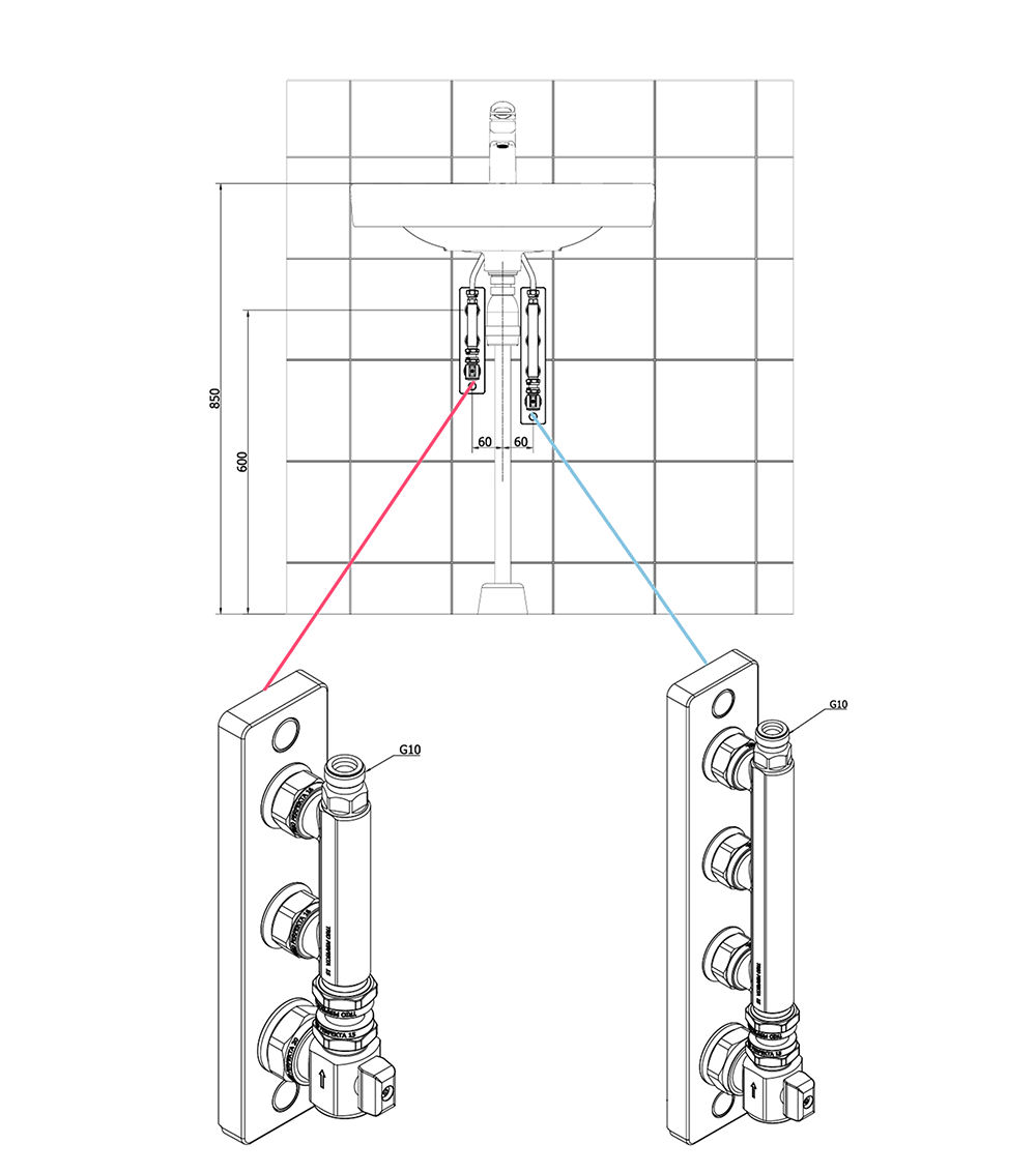 Inkommande vatten leds dolt till fördelare/ventil som lämpligast monteras i en kommod, under en bänkskiva eller bredvid en tvättmaskin där de blir relativt osynliga. Där finns möjlighet att stänga av vattnet och behålla kontrollen över vattenflödet om det skulle behövas. Vattnet fördelas sedan vidare i rör dolda i vägg, ut till olika tappställen till exempel duschblandare, wc, tvättmaskin o.s.v. Installationsmetoden innebär att alla skarvar hamnar utanför tätskikt och eventuellt läckage blir lätt att upptäcka.