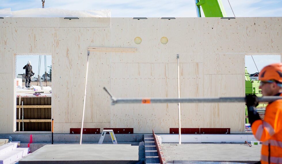 – Eftersom Kerto LVL är ett material som väger väldigt lite går det snabbare att tillverka hybridsandwichelementen på fabrik, för att sedan transportera dem till byggarbetsplatsen. Att elementen är lätta gör även att transportutsläppen blir mindre och väl på plats är de enklare att lyfta än traditionella väggelement, säger Håkan Arnebrant och fortsätter: