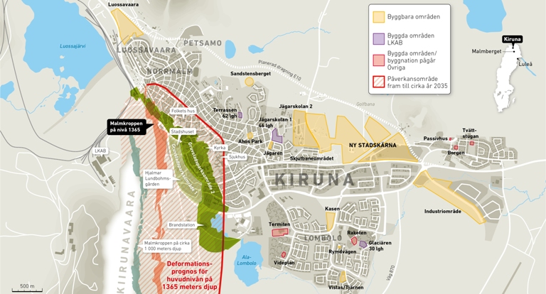 Det första kvarteret i Kiruna har redan rivits och just nu pågår arbete parallellt på flera platser: stadshusbygget, de första bostäderna, byggprocesser för räddningstjänst, badhus och skolor.