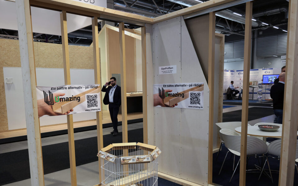 Det finns flera sätt att locka besökare att stanna till i montern i C-hallen Nordbyggmässan. Vissa utställare bjuder på lyxkaffe andra på tävlingar eller klimatsmarta nyheter.