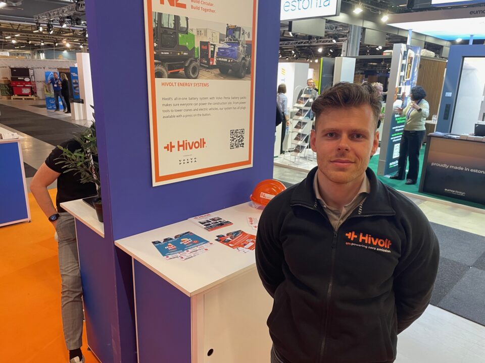 Michel Bodegraven representerar företaget Hivolt Energy Systems som jobbar med mobila batterisystem. Det handlar om ett Volvo Penta-batteripaket som kan användas till allt från handverktyg till tornkranar och fordon på en byggarbetsplats.